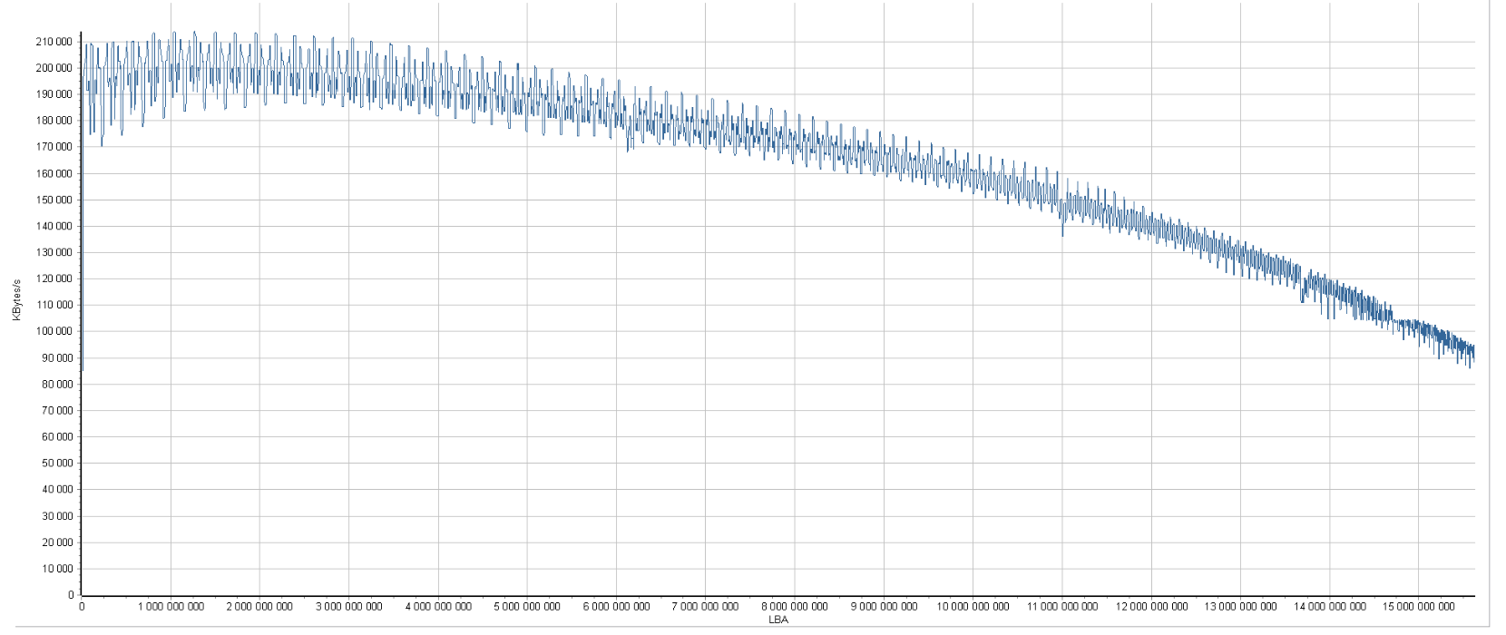 Везде в магазинах продавцы пишут, что он якобы 7200, и везде на форумах покупатели пишут, что это пиздёж голимый и 7200 там нет. Ну, по скорости очевидно, что их там действительно нет. 5400 скорее всего. Также везде пишут, что у него прошивка специально оптимизирована под видеонаблюдение. (Я его как раз брал для видеорегистратора). Интересный график, как будто бы пила курильщика нездорового диска, но я предполагаю, что это связано именно с этой прошивкой. Диск очень тихий и холодный. Пока не поставил, лень регистратор отключать и разбирать.